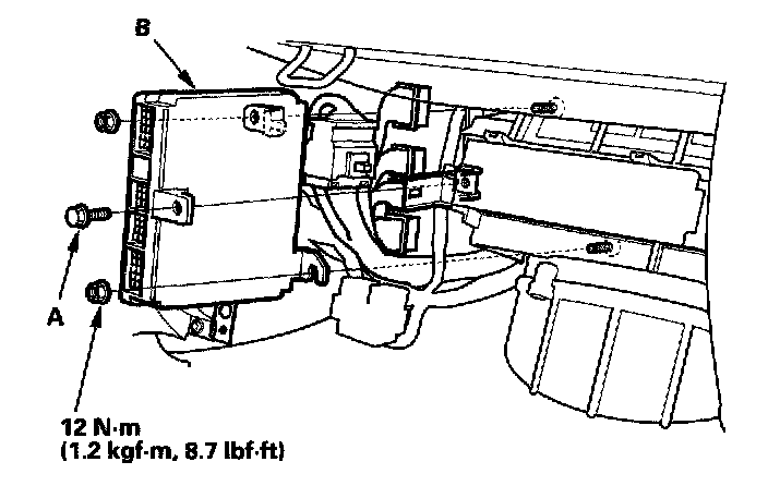 5. Remove the nuts, then remove the ECM/PCM (B).