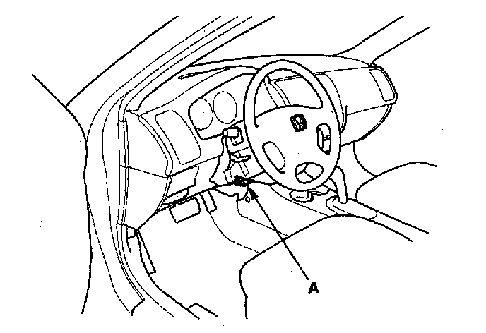 2. If the MIL stays on, connect the HDS or a scan tool to the data link connector (DLC) (A) located under the driver's side of the dashboard.