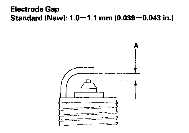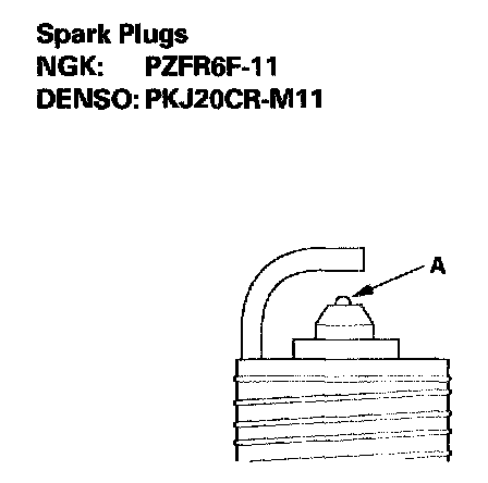 2. Do not adjust the gap of platinum tip plug (A); replace the spark plug if the gap is out of specification.