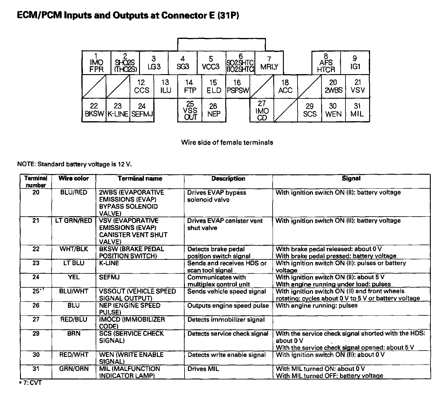 ECM/PCM Inputs And Outputs At Connector E (31P) Part 1: