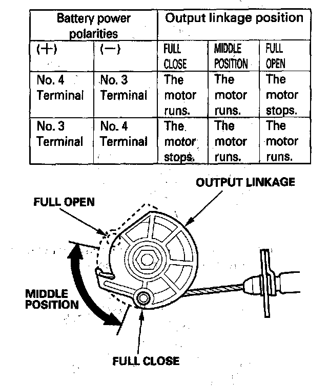 6. Check the operation of the actuator motor in each output linkage position according to the table. You should hear the motor.