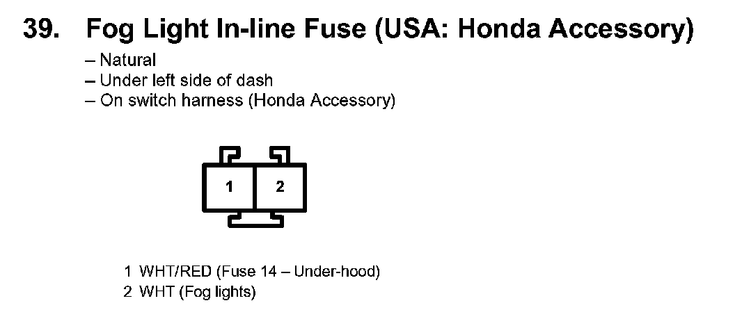 39. Fog Light In-line Fuse (USA: Honda Accessory):
