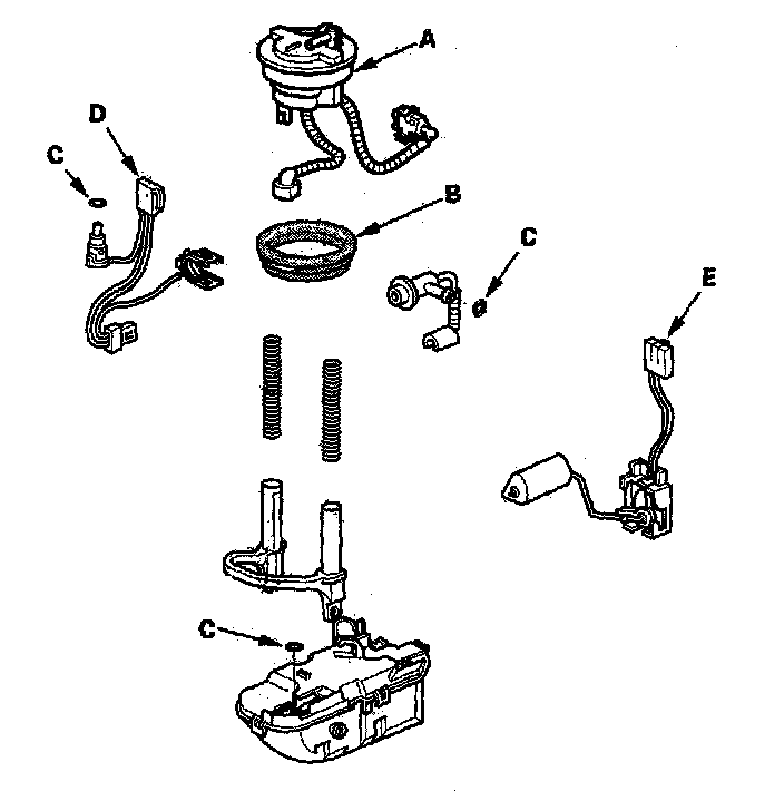 - When installing the fuel gauge sending unit (E), make sure the connection is secure and the connector is firmly looked into place. Be careful not to bend or twist it excessively.