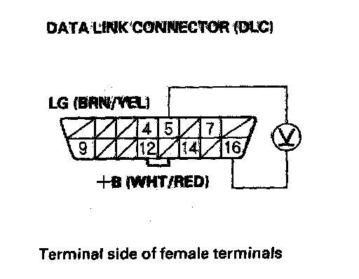 3. Measure voltage between DLC terminals No.5 and No.16.