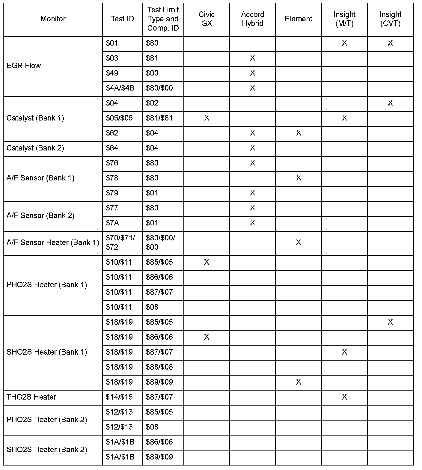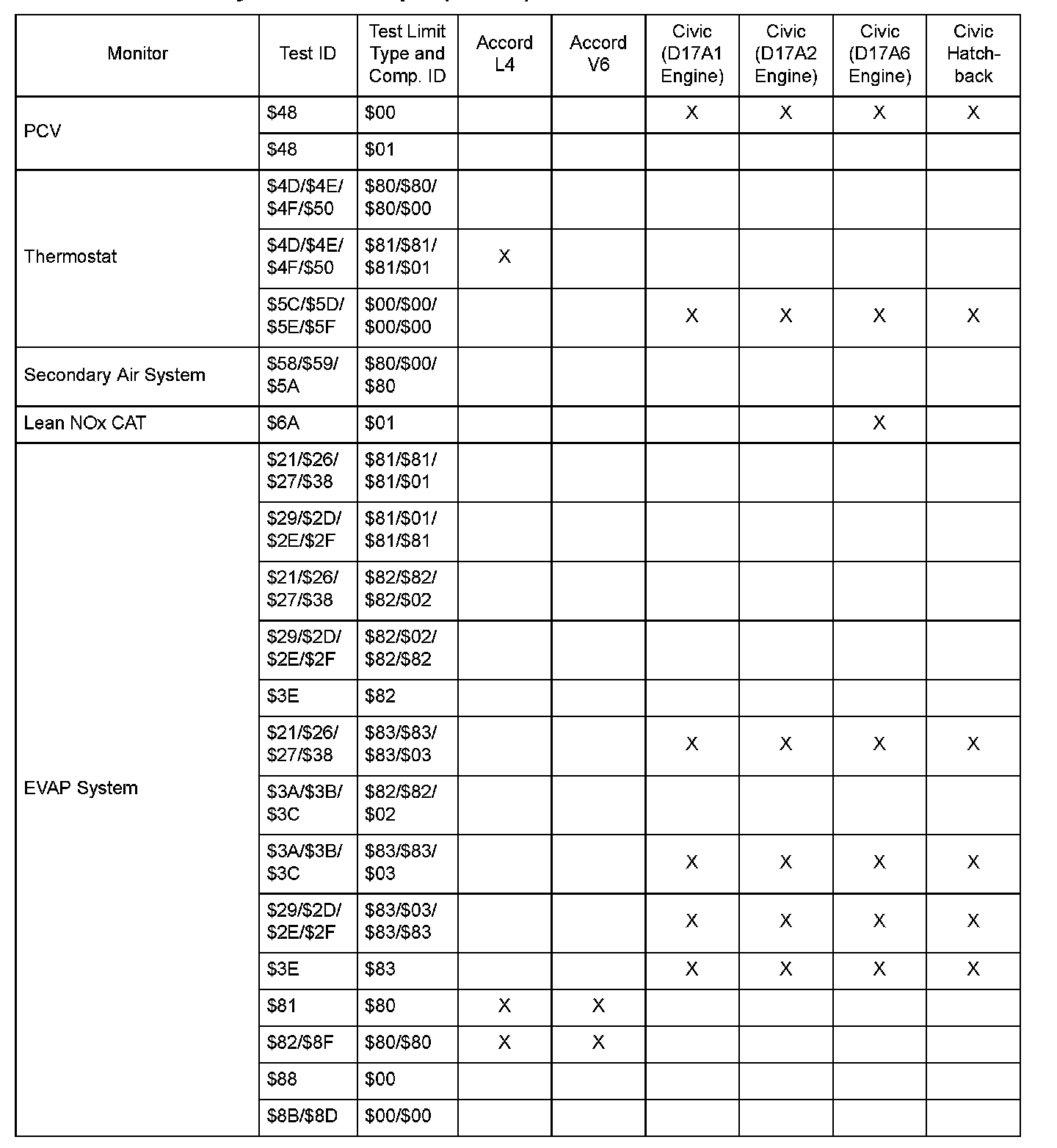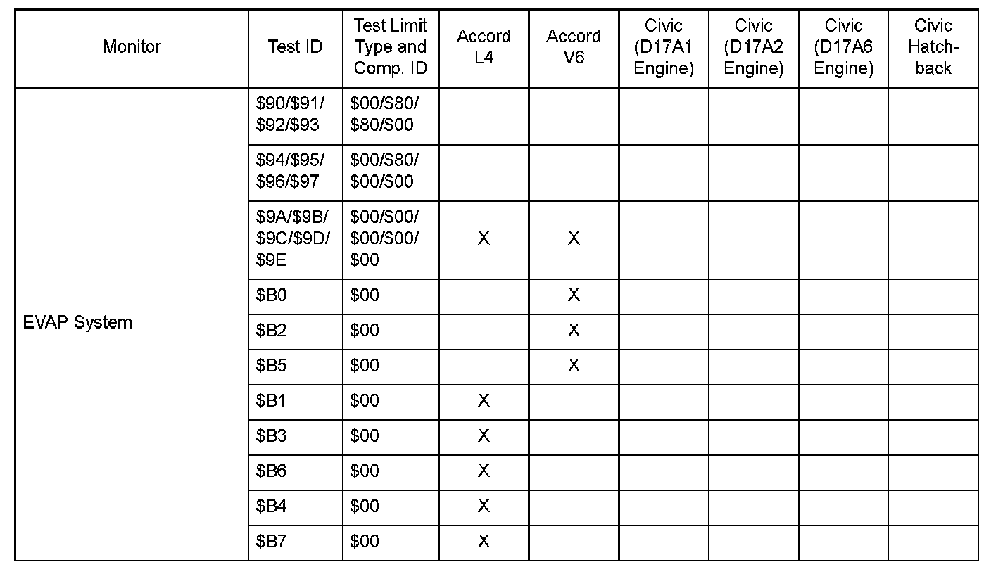 SAE J1979 Mode $06 Test Information: All 2005 Hondas