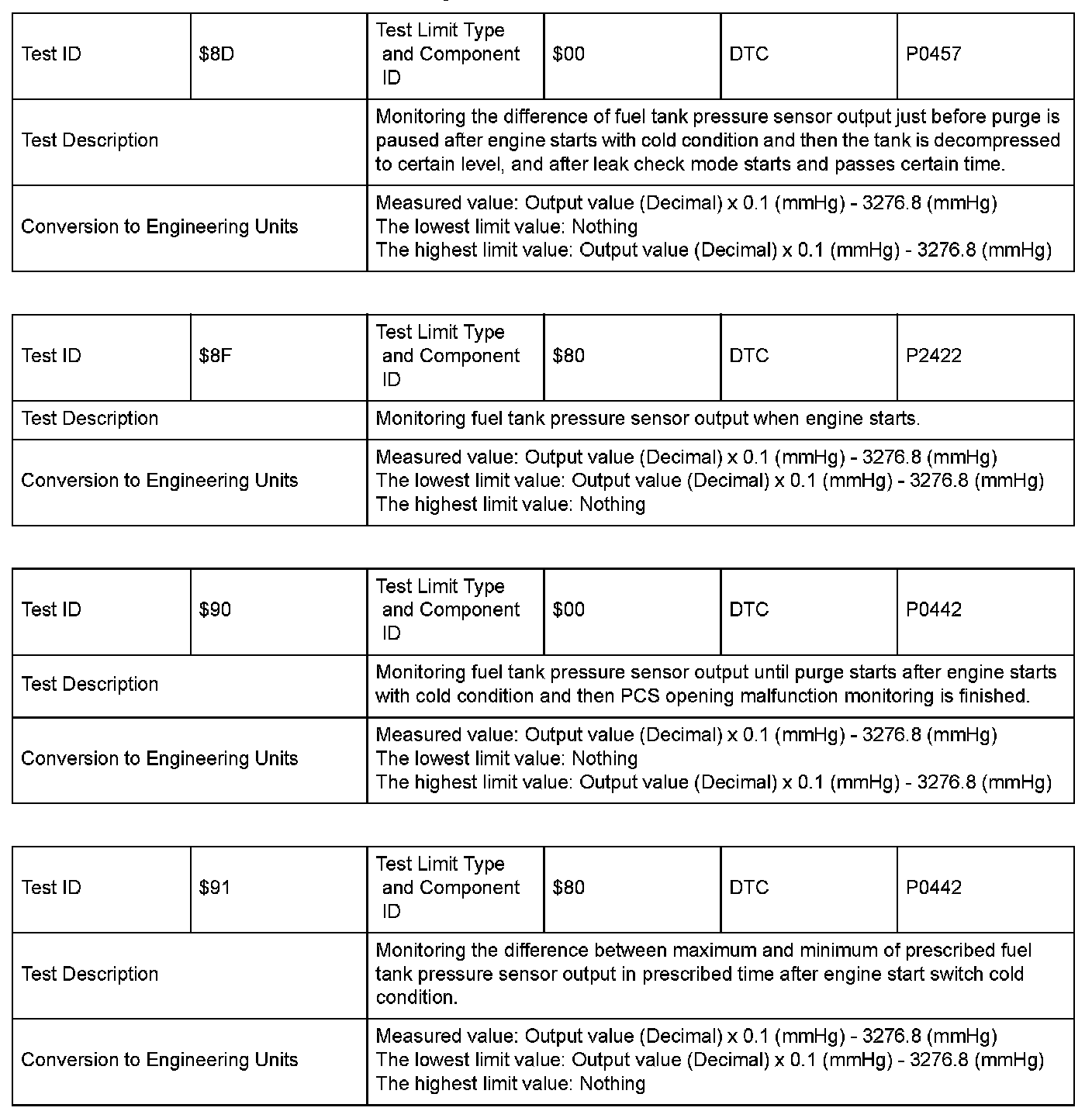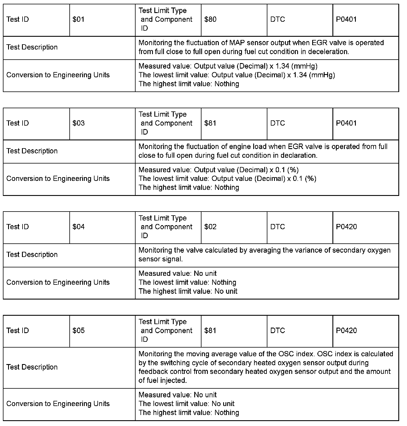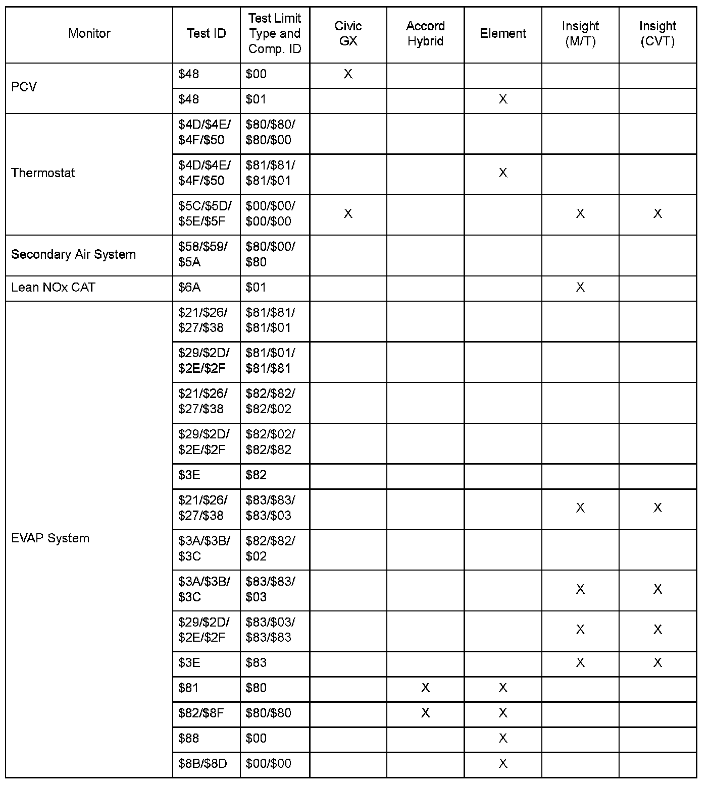 SAE J1979 Mode $06 Test Information: All 2005 Hondas