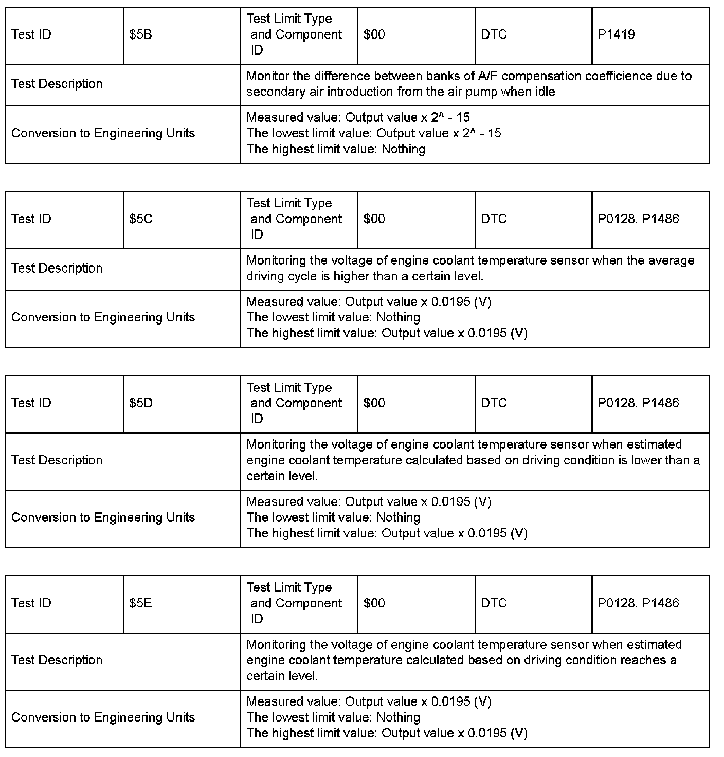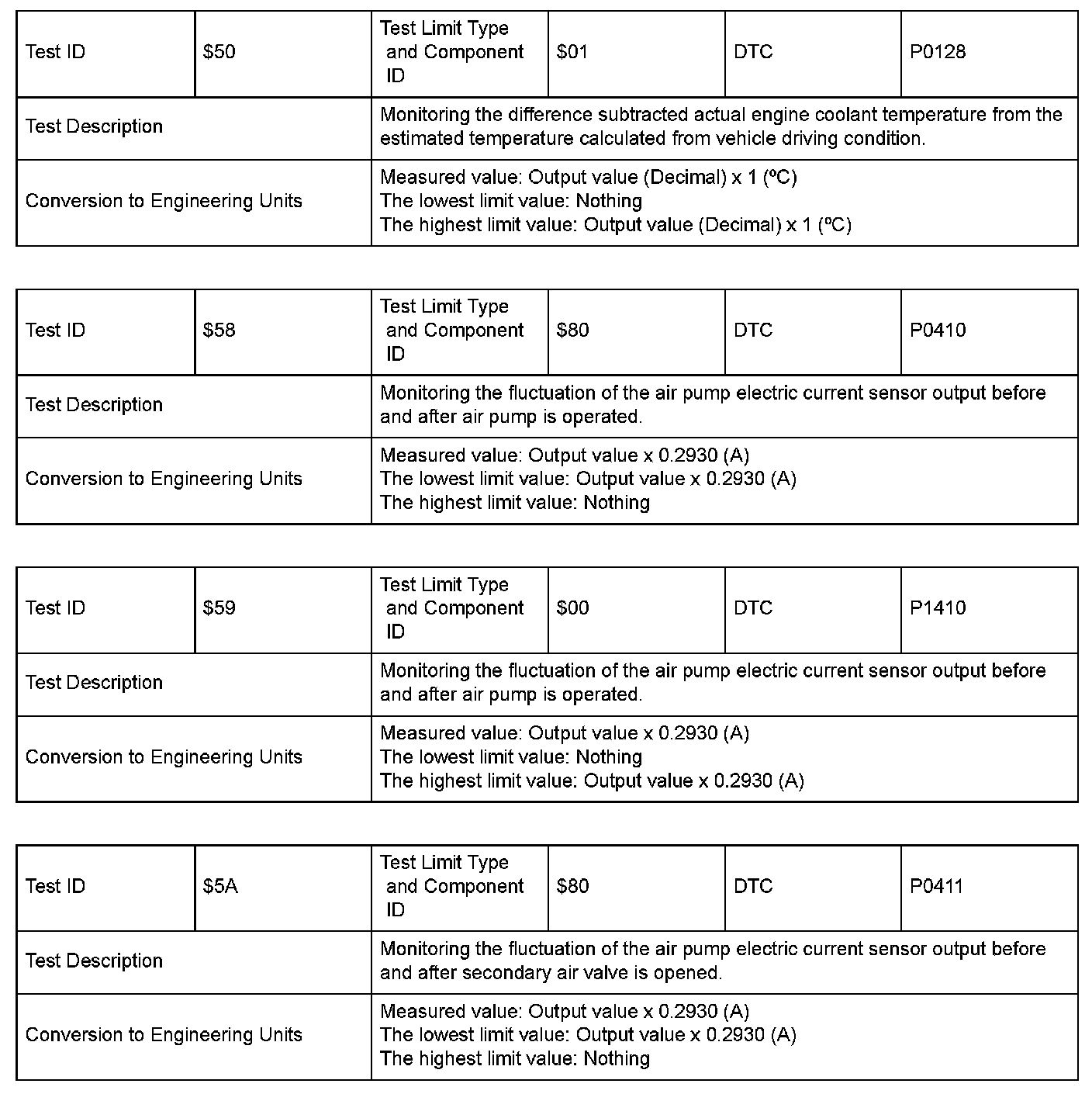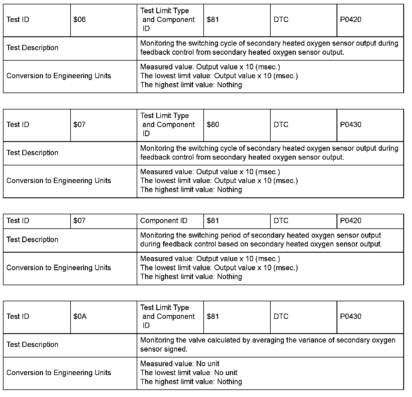 SAE J1979 Mode $06 Information by Test ID