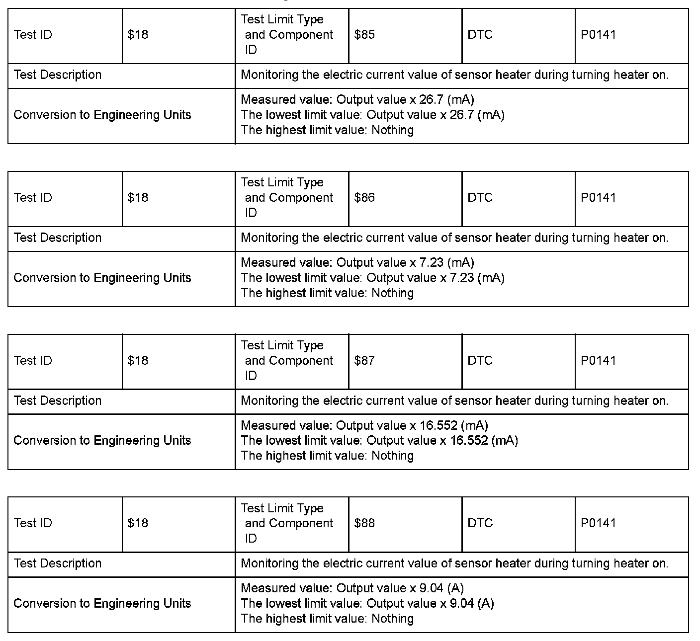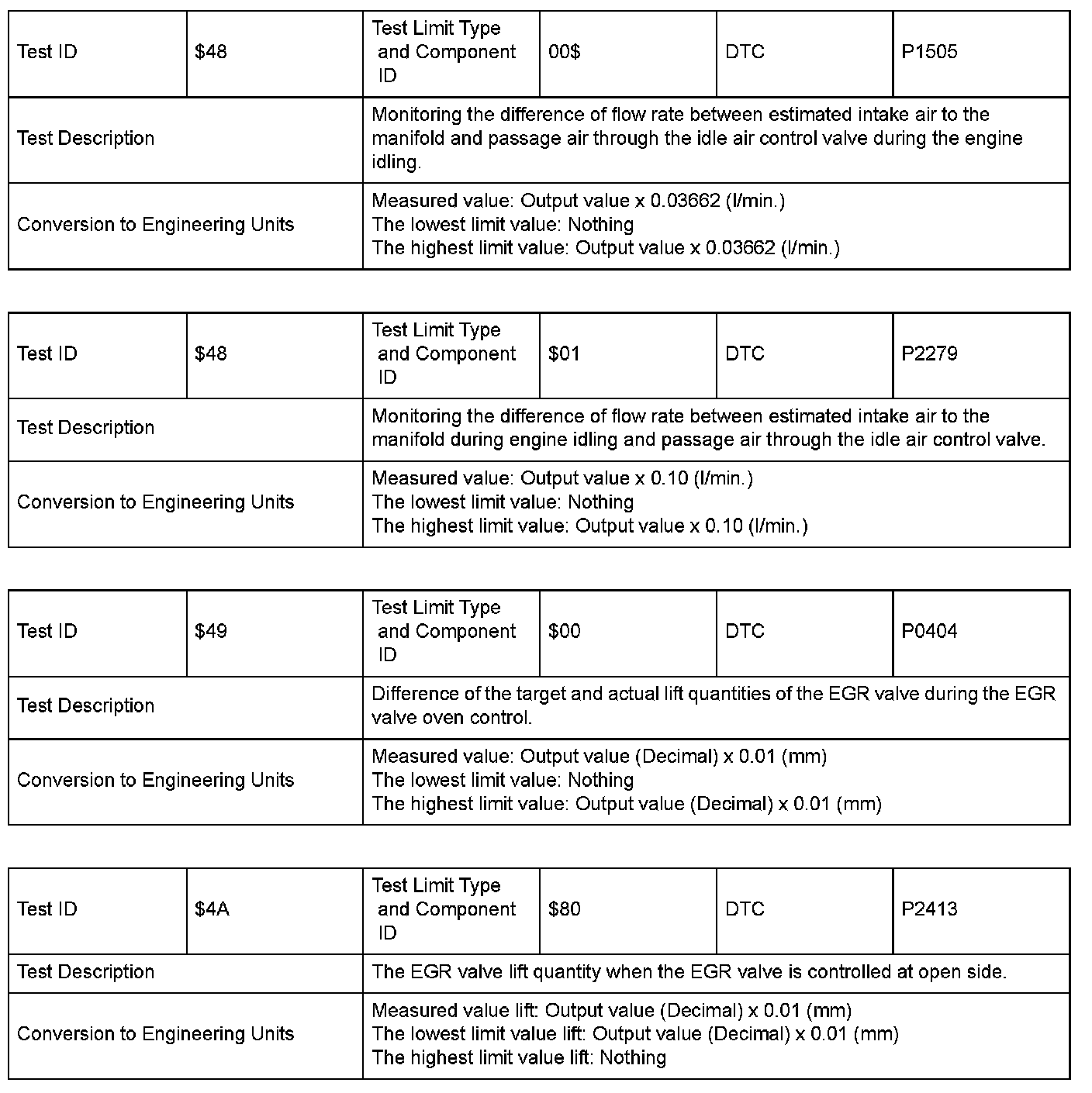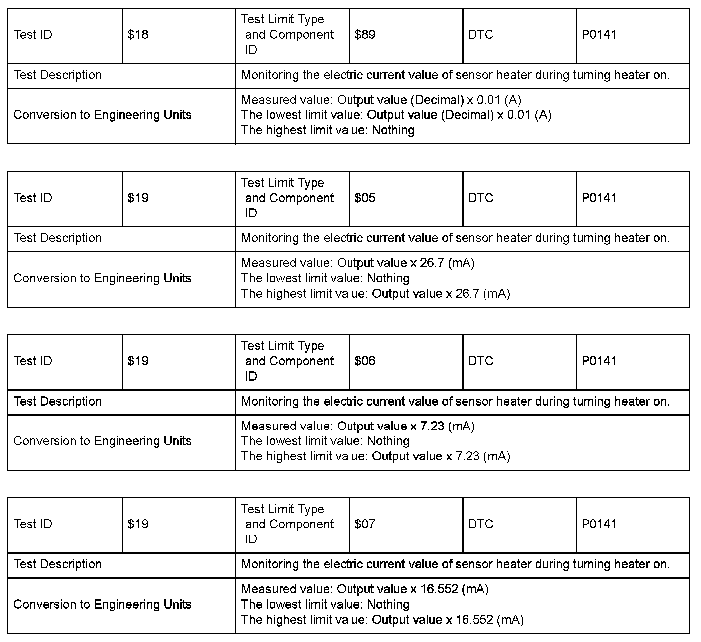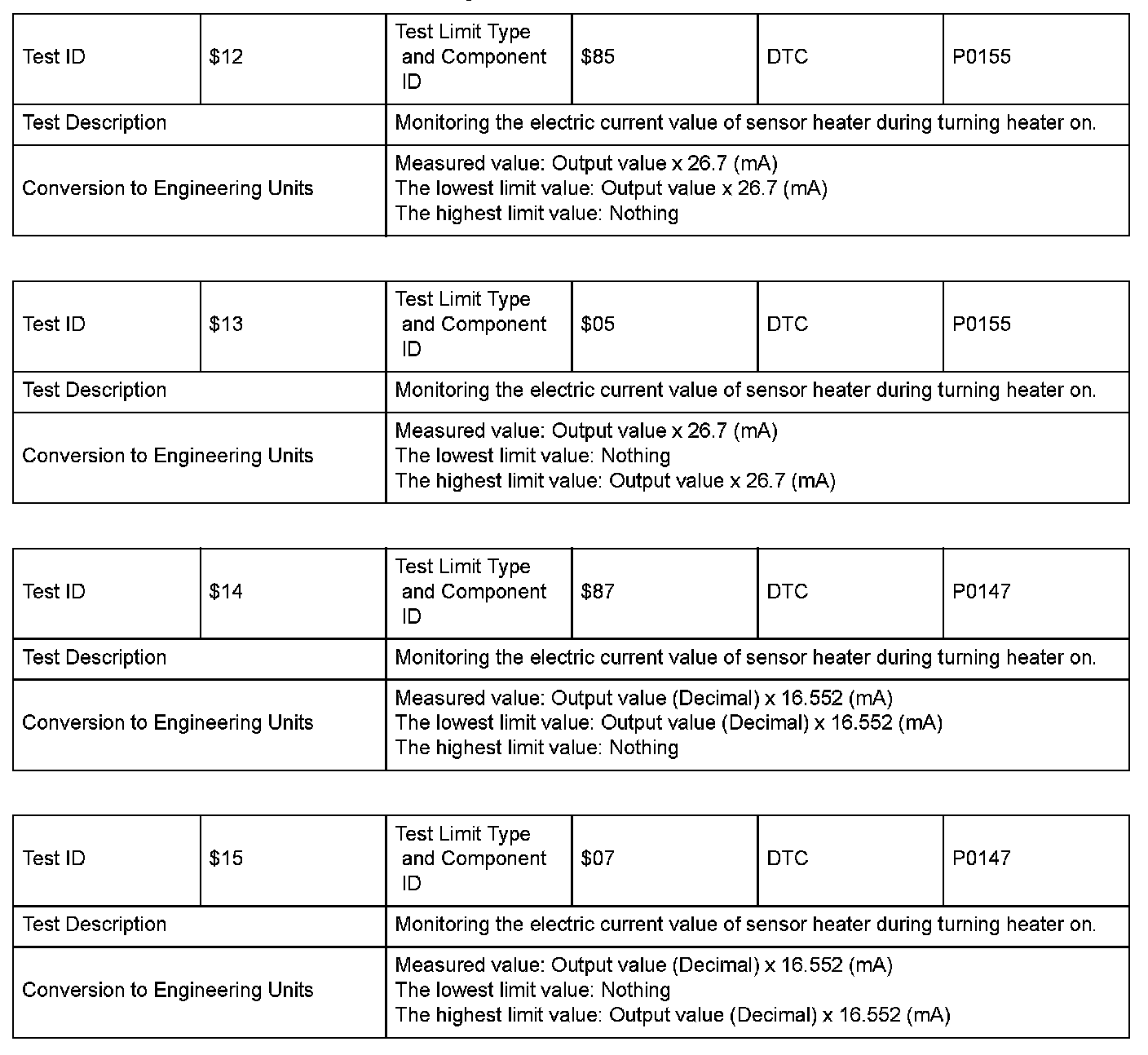 SAE J1979 Mode $06 Information by Test ID
