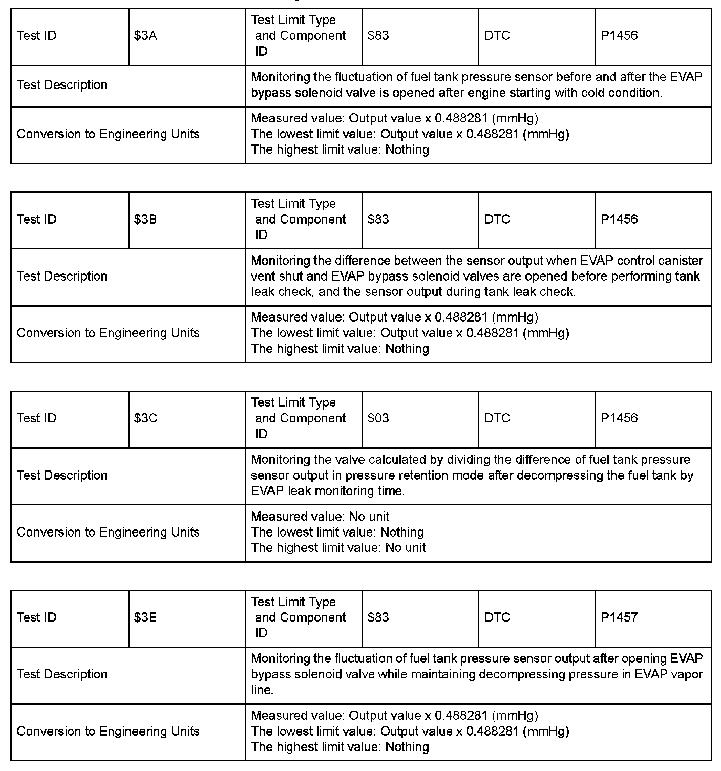 Mode $06 Test ID by Model: Group 3