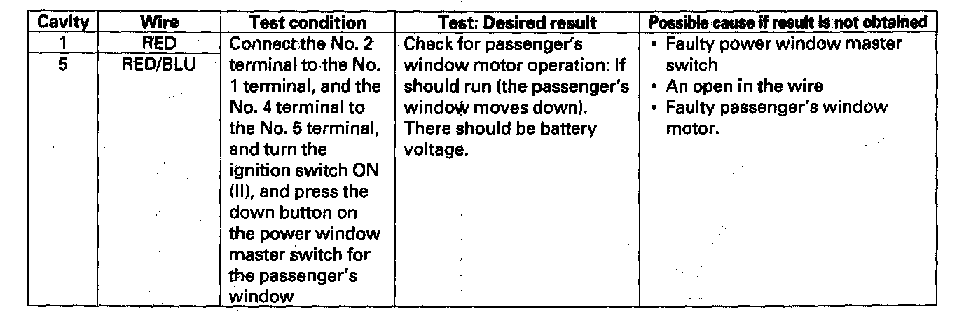Passenger's Window Switch Input Test