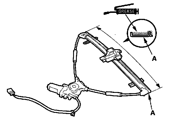 5. Apply multipurpose grease to all the sliding surfaces of the regulator (A) where shown.