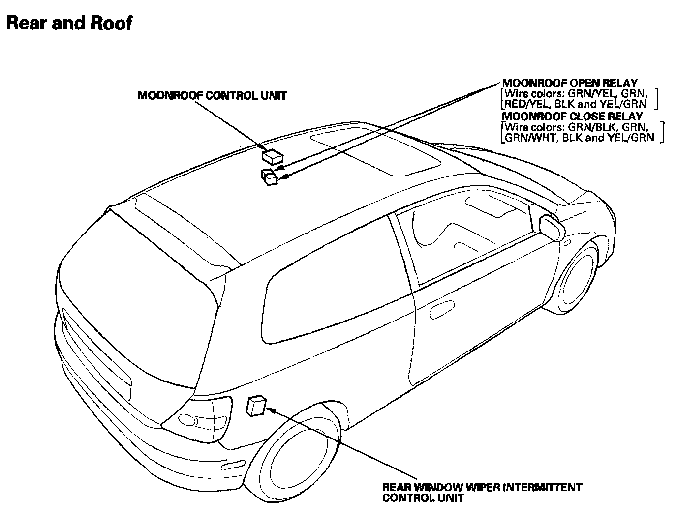 Relay And Control Unit Locations - Rear And Roof: