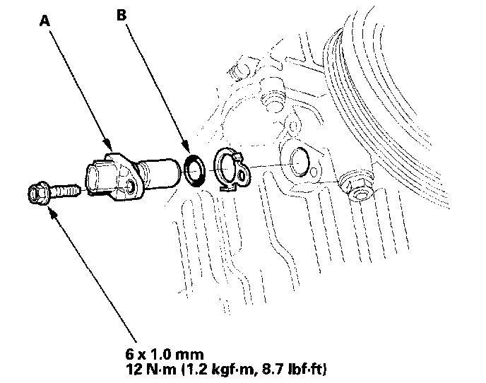 Install the new CKP sensor with a new O-ring (B).