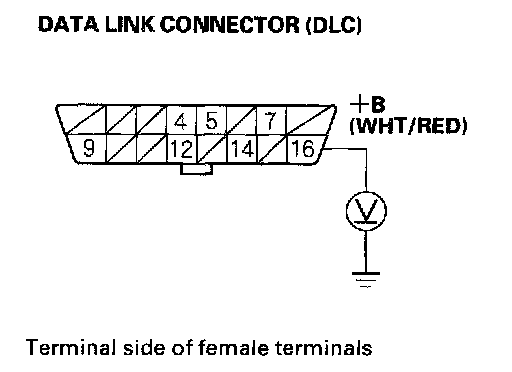 1. Measure voltage between DLC terminal No.16 and body ground.
