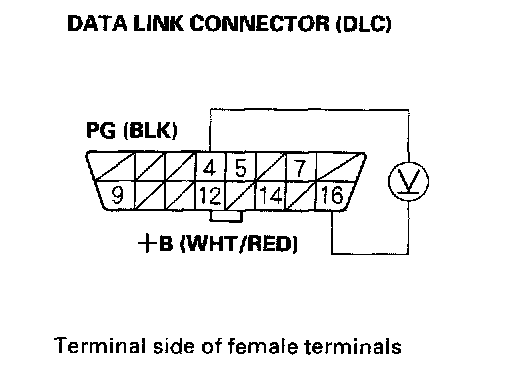 2. Measure voltage between DLC terminals No.4 and No.16.