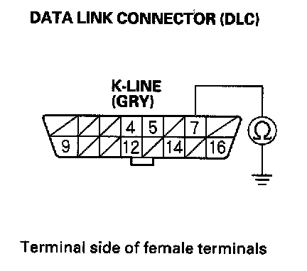 8. Check for continuity between DLC terminal No.7 and body ground.