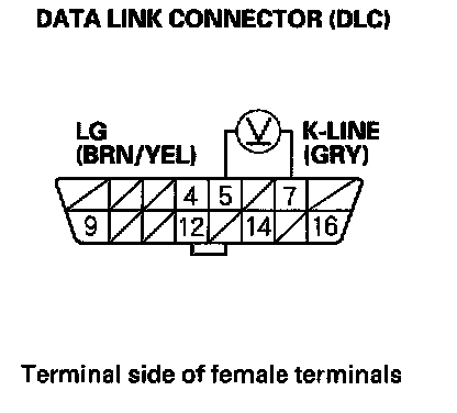 13. Measure voltage between DLC terminals No.5 and No.7.