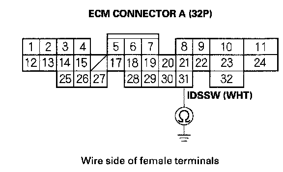 13. Check for continuity between ECM connector terminal A31 and body ground.