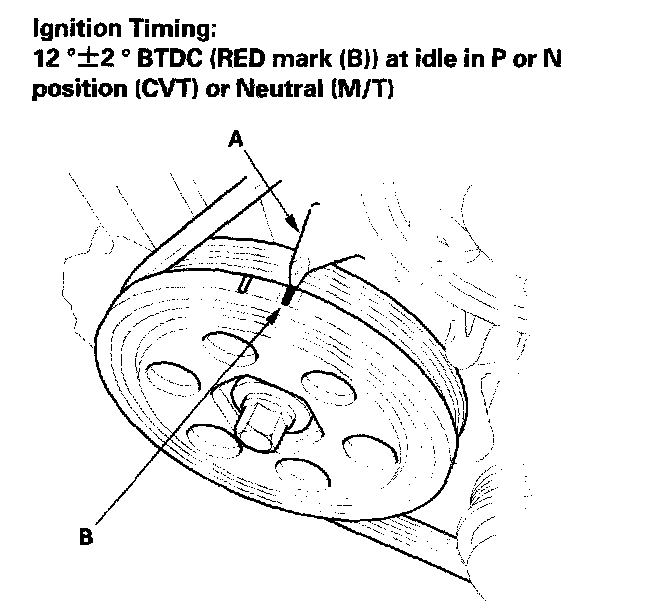 Ignition Timing Inspection1. Connect the Honda Diagnostic System (HDS) to the data link connector (DLC), and check for DTCs. If a DTC is present, diagnose and repair the cause before inspecting the ignition timing.