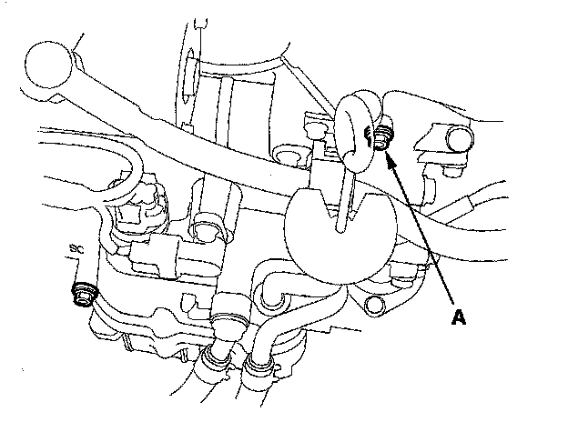 9. Connect the low pressure gauge (07406-0070300) to the lubrication pressure inspection hole (C).