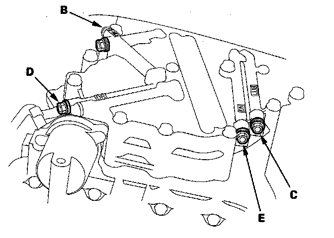 12. Shift to the D position, and measure forward clutch pressure at the forward clutch pressure inspection hole (B).