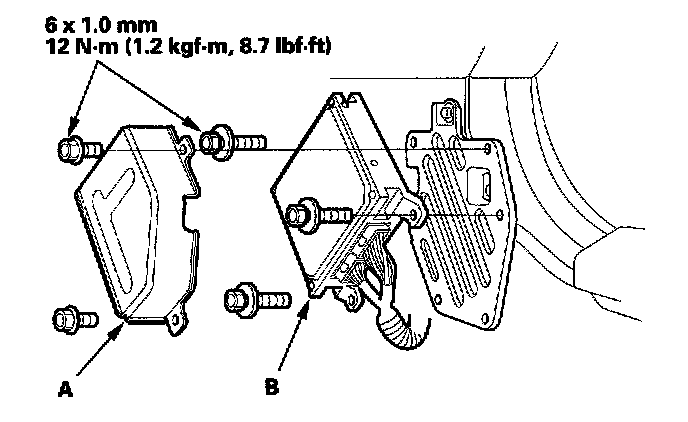 5. Remove the mounting bolts securing the EPS control unit, but do not disconnect the EPS control unit connectors, then remove the TCM cover (A).
