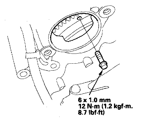 15. Attach the flywheel to the drive plate with eight bolts. Rotate the crankshaft pulley as necessary to tighten the bolts to 1/2 of the specified torque, then to the final torque, in a crisscross pattern. After installing the last bolt, check that the crankshaft rotate freely.