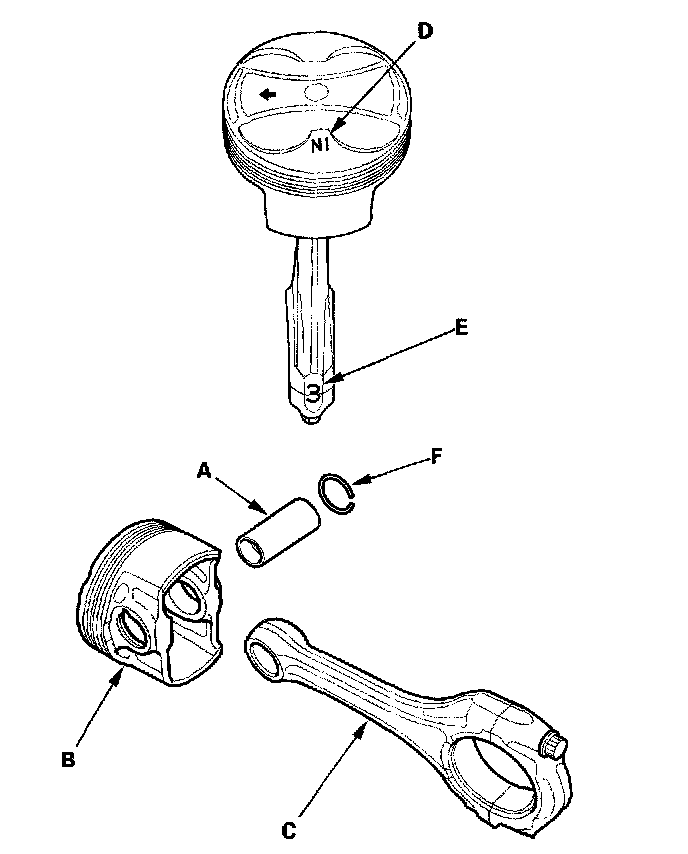 NOTE: Inspect the piston, piston pin, and connecting rod when they are at room temperature.