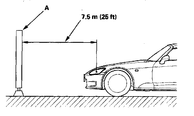 2. Park the vehicle 7.5 m (25 ft) away from a wall or a screen (A).