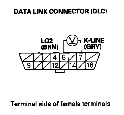 5. Measure voltage between DLC terminals No. 5 and No. 7.