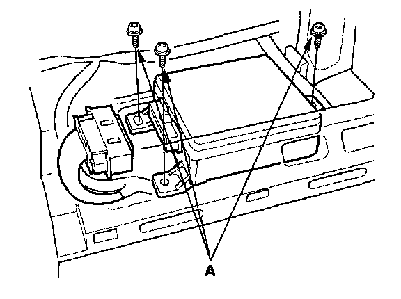 5. Remove the three Torx bolts (A) from the SRS unit, then pull out the SRS unit from the bracket.