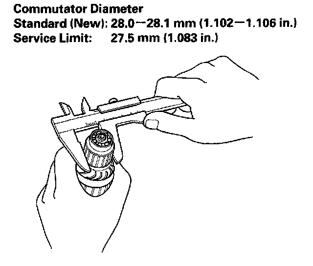 5. Check the commutator diameter If the diameter is below the service limit, replace the armature.
