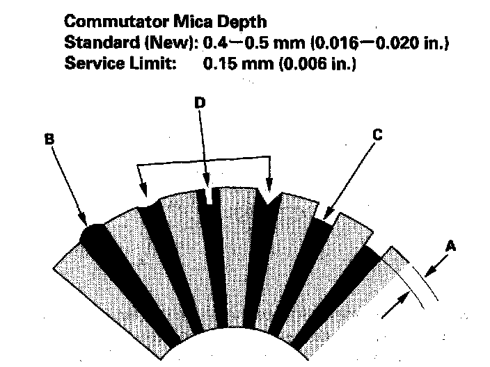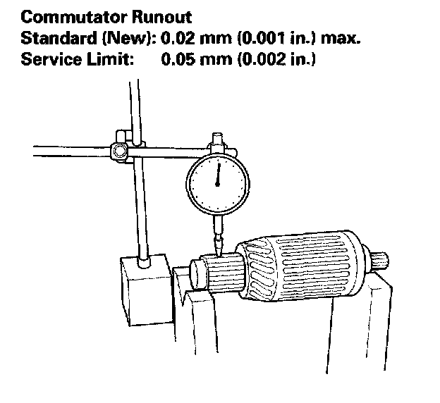 - If the commutator runout is within the service limit, check the commutator for carbon dust or brass chips between the segments.