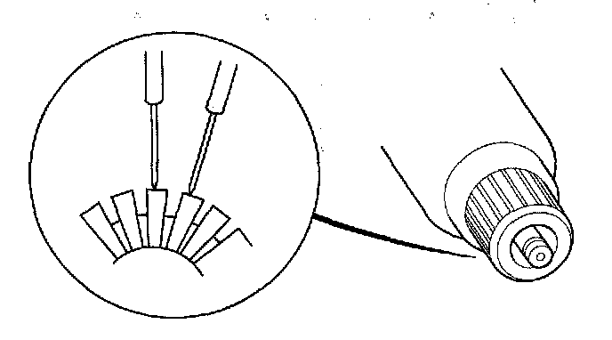 8. Check for continuity between the segments of the commutator. If there is an open circuit between any segments, replace the armature.