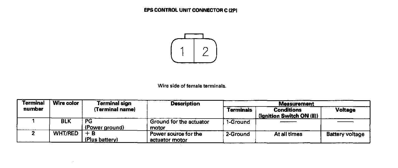 EPS Control Unit Inputs and Outputs for Connector C (2P)