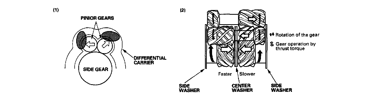 2) The ends of the pinion gears are held firmly against the differential carrier due to the side thrust from the helically cut gears.