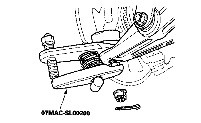 2. Remove the cotter pin from the lower arm ball joint castle nut, and remove the nut.
