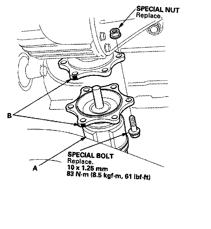 7. Install the inboard joints (A) onto the rear differential by aligning the reference marks (B).