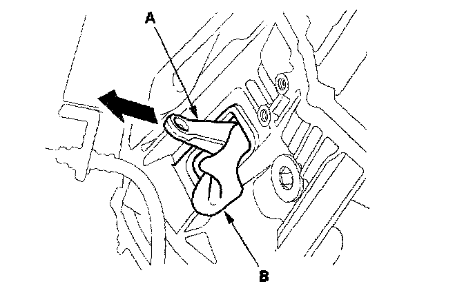 4. Pull the release fork (A) out until it stops, then wedge a shop towel (B) between the release fork and clutch housing to hold the release fork in place.