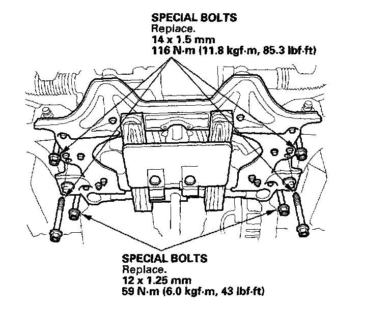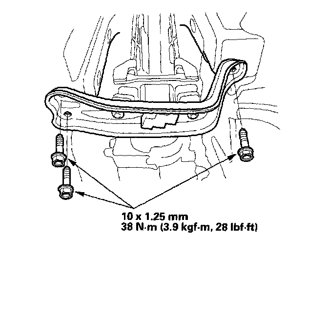 8. Raise the transmission, then install the three transmission rear mount bolts.
