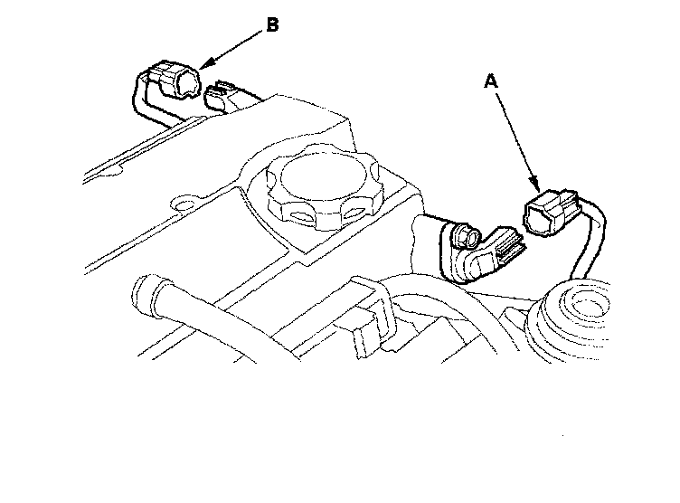 23. Connect the TDC1 (A) and TDC2 (B) sensor connectors.
