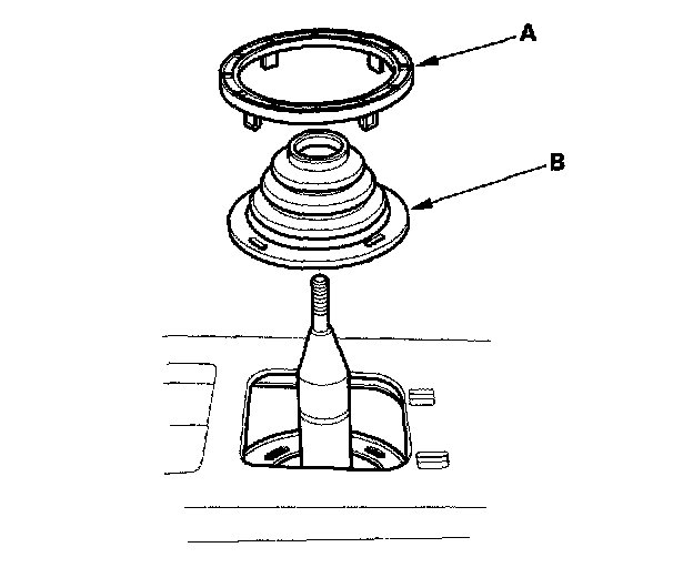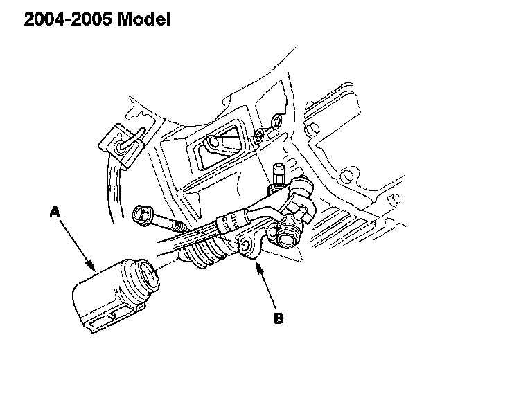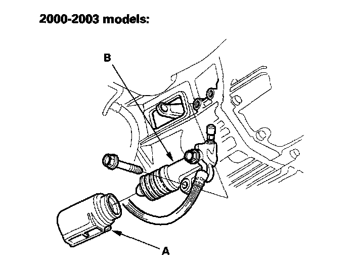 24. Remove the release fork boot (A), then carefully remove the slave cylinder (B). Do not press the clutch pedal once the slave cylinder has been removed.