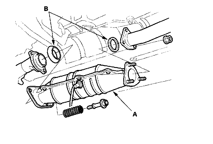20. Remove the Three Way Catalytic Converter (TWC) (A) and gaskets (B).