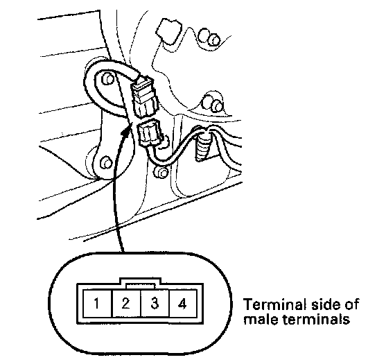 5. Connect the test leads of an analog ohmmeter to the No. 3 and No. 4 terminals.