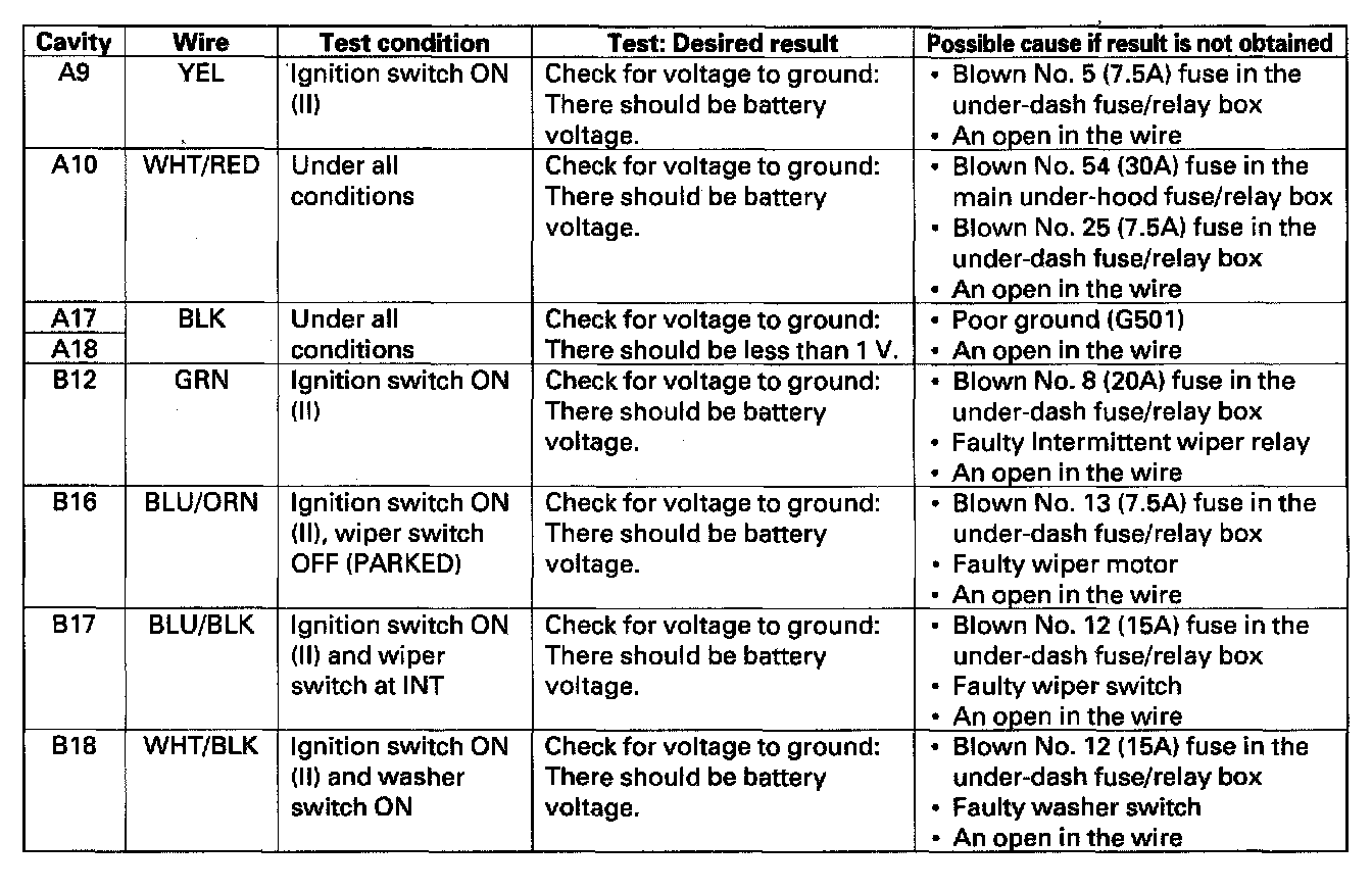 Intermittent Wiper Circuit Input Test'04-05 models