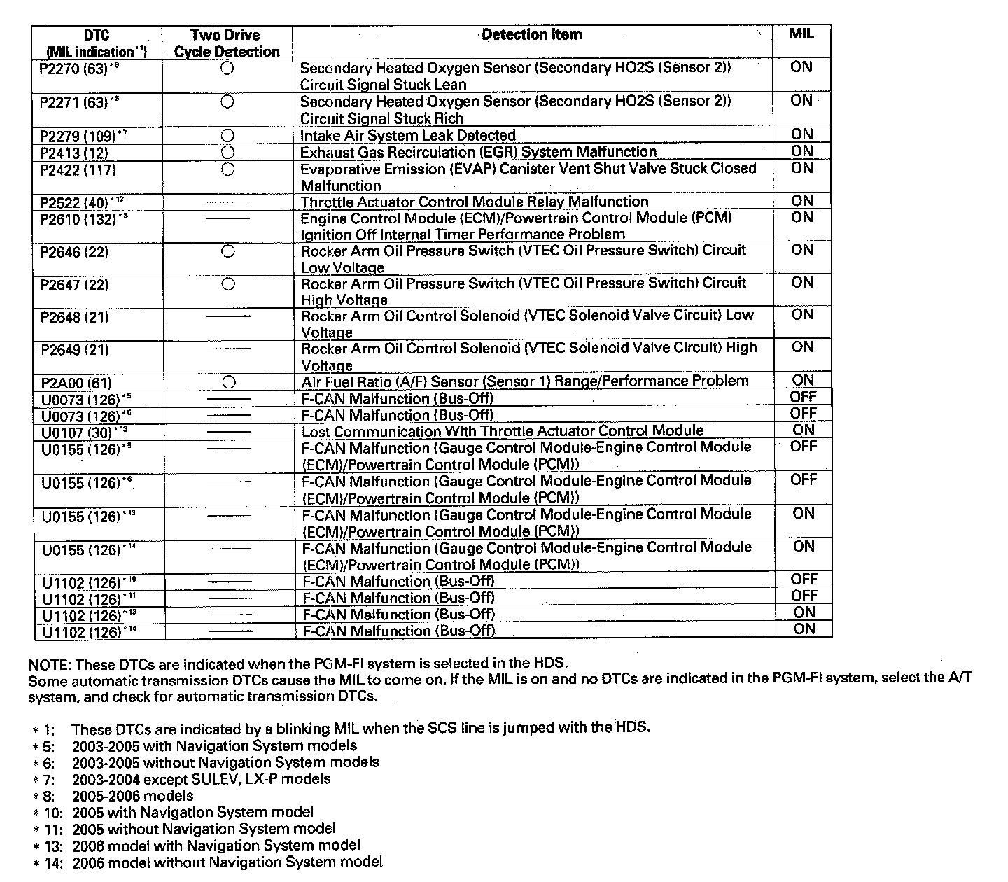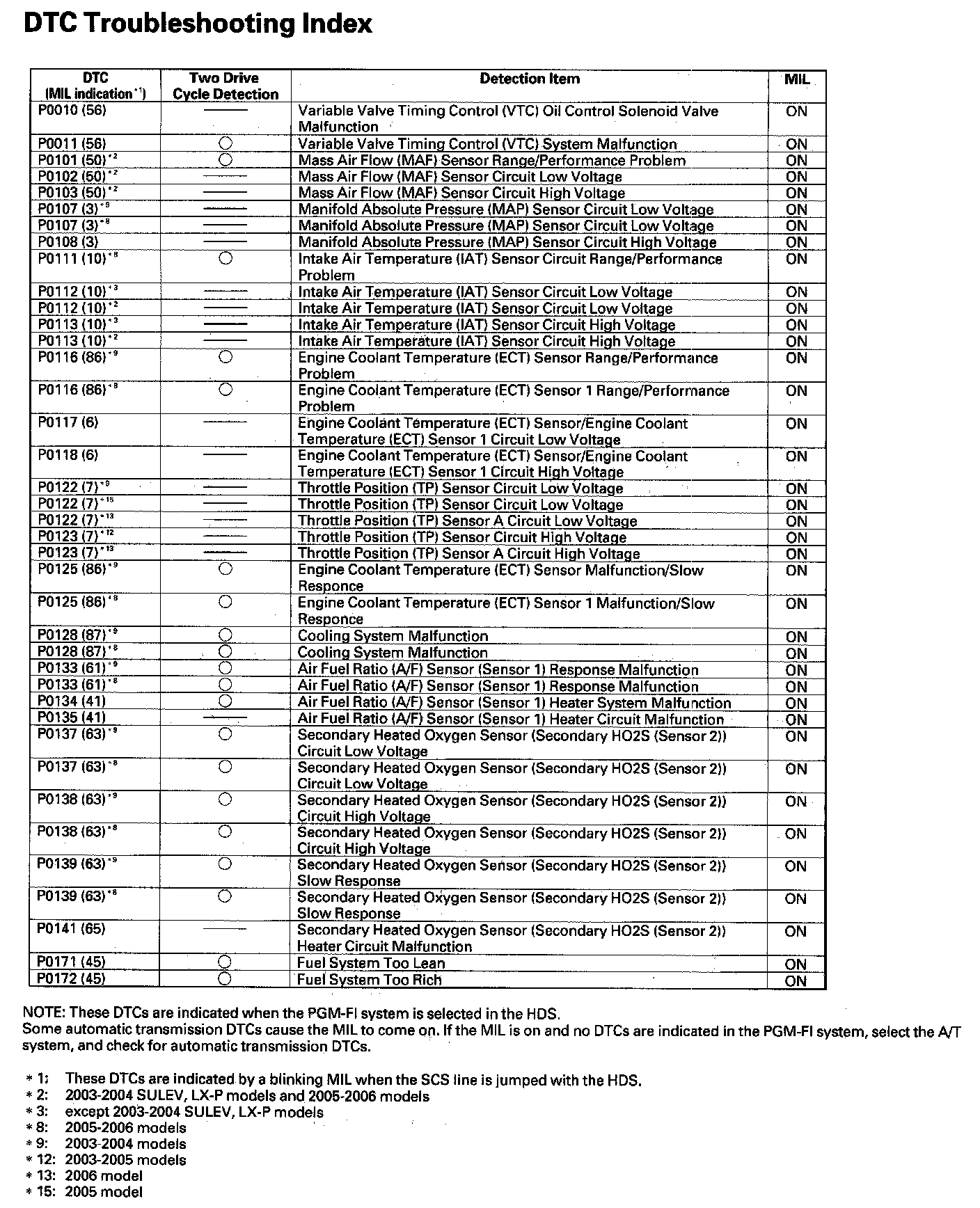 DTC List - Fuel and Emissions
