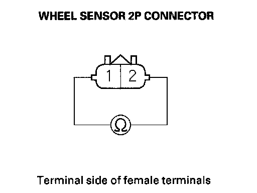 10. Measure the resistance between the appropriate wheel sensor 2P connector terminals, then measure the resistance between the same terminals arid reverse the positive and negative tester probes.