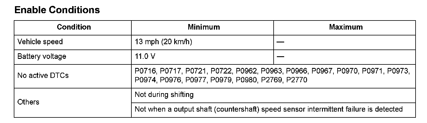 The fluctuation of the vehicle speed measured by the input shaft (mainshaft) speed sensor in 10 milliseconds is 4 mph (6km/h) or more, and it fluctuates at least six times within 500 milliseconds.
