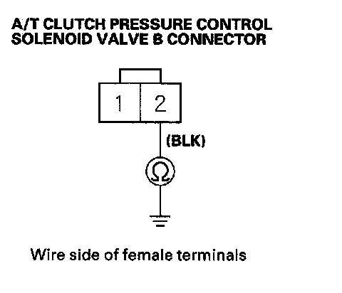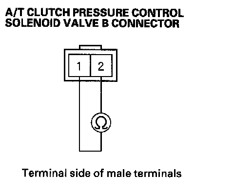 9. Measure resistance between A/T clutch pressure control solenoid valve B connector terminals No. 1 and No. 2.