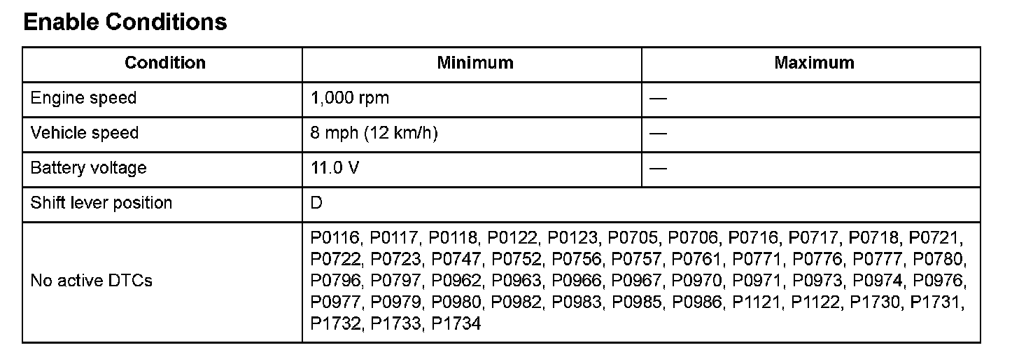 Start the engine, shift to D position, and drive the vehicle at a speed of 8 mph (12 km/h) or more for at least 12 seconds in 3rd gear.